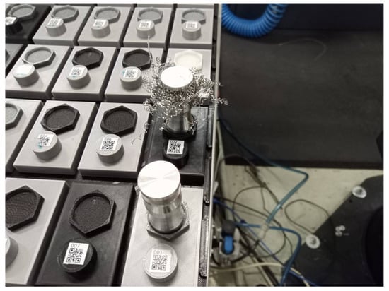 During all of these steps, different data from the involved components is collected and stored in the logs, as proposed in the XES DataStream extension format. This data includes machining data such as the workload of the drive, the axis speed for different axis, and the actual speed and workload of the spindle as well as measuring data from the optical measurement. The dataset (https://doi.org/10.5281/zenodo.7477845 (accessed on 8 February 2023)) which is created adheres to the earlier described XES DataStream extension format provides the basis for analysis tasks such as process mining, prediction of part quality, or detection of broken tools.