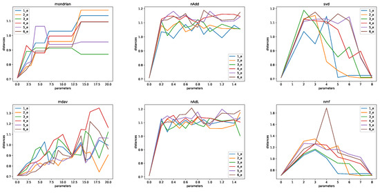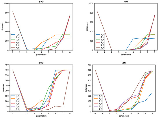 - Transform-based protection: these methods reduce the quality of the data by transforming the data into another space in which we can remove details. We have considered the use of singular value decomposition (SVD), principal component analysis (PCA), and non-negative matrix factorization (NMF) for this purpose. In the case of SVD and PCA, we apply the decomposition, select the principal components, and then we rebuild the matrix with only these selected components. The parameter of the method is the number of components selected. We denote this k. In this case, the larger the k, the better the reconstruction of the original data. Therefore, the smaller the k, the larger the protection, and at the same time, the smaller the utility of the resulting protected data. This approach is similar to non-negative matrix factorization. For NMF, as above, the smaller the number of components k, the larger the protection and the smaller the utility. While SVD and PCA can be applied to matrices with arbitrary real numbers, NMF can only be applied to positive data. Because of this, data are scaled into the [0,1] interval before the application of the NMF protection. The data are re-scaled back after the NMF protection.