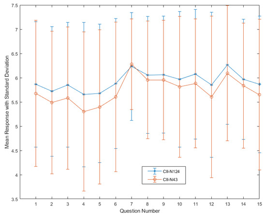 Mean response with standard deviation for the CII-N124 and CII-N43 results.