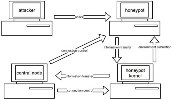As shown in Figure 2, the high-interactivity honeypot generates an attack environment for simulated attacks. After the attacker launches an attack on the attack environment, the central node in the honeypot generates and packages the attack information. Once the packaging is complete, the specific attack information is transmitted to the central node of the entire system for further information processing.