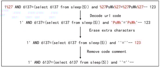 Static vectors were used to represent the attack features of the original payloads while preserving the semantic information and attack intention. For the subsequent feature extraction and transformation, we first needed to process the data of the original payloads, and the processing steps are shown in Figure 2.