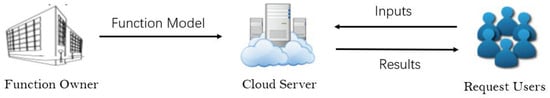 Consider a setting with three entities in the process of outsourcing the computation of functions as shown in Figure 1: a function owner, who possesses the function model and wants to outsource its computation to a cloud server; a series of request users, who need to obtain the function’s results on the private inputs; and a cloud server that performs the computation of the function based on the inputs and returns the results to the request users. In this process, the cloud server is untrusted. It should not learn anything about either the input or the function. Additionally, the correctness of the results should be verified. Thus, there are three requirements that need to be considered: function privacy, input privacy and public verifiability.