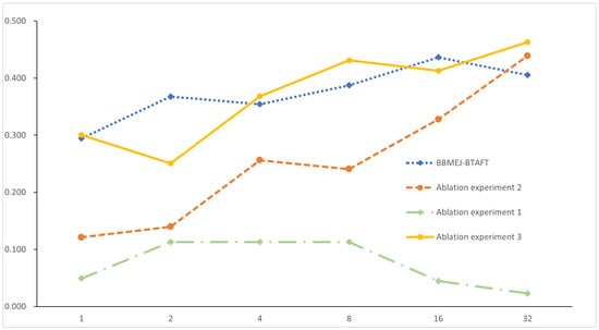 Experiment 2: We tested the results in a small dataset using a model without a small amount of parameter fine-tuning. The model without a small amount of fine-tuning also outperformed the other models in terms of results, but the accuracy of the fine-tuned model was always higher than that of the less fine-tuned model. The Macro-F1 value exceeded that of the fine-tuned model by 0.034 at a single classification of 32, which did not open a large gap and gave the previously fine-tuned model a clear advantage.