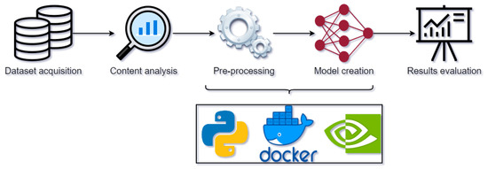 A pipeline was assembled to create models for transcribing Portuguese speech into the respective transcription using deep learning to facilitate connections between each necessary stage of this process. Figure 1 illustrates the pipeline built, whose stages are described below:
