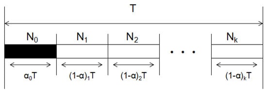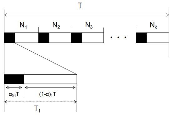 Similar to the HDT protocol, the total period T is divided into K periods on average, and each period is composed of two parts, which are the time for energy harvesting and the time for packet transmission in the HHT protocol, as shown in Figure 3. As a result, the energy harvested by sensor node is as follows: