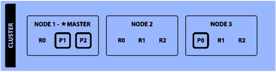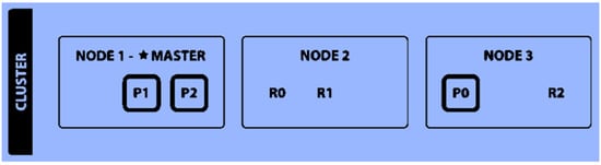 If the number of replica shards per primary shard is increased to two, the computer network looks as shown in Figure 4.