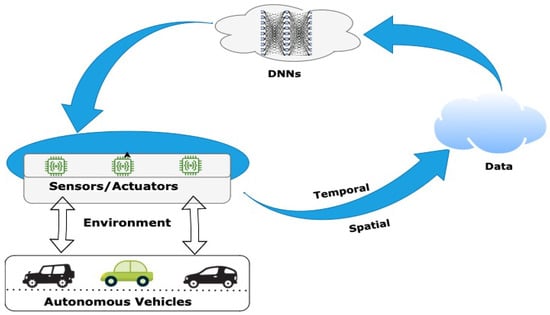 As shown in Figure 4, using the autonomous car as an example in the transportation CPS domain, the sensors/actuators will collect and send spatial-temporal data of the moving vehicle. With the help of the DNN model, the autonomous vehicle will obtain updated instructions about its environment.