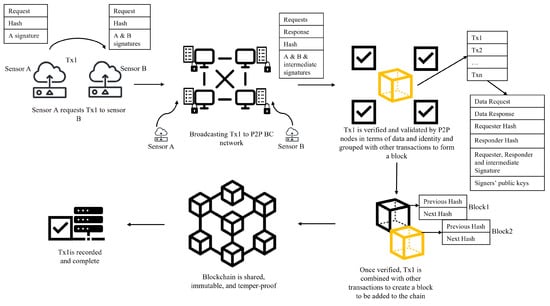 - Computation Overhead: heterogeneous IoT devices have different processing capabilities for running encryption and decryption, which leads to variations in processing time. Integrating a BC into the sensor network enables a logical peer-to-peer network to validate and store transactions locally, which is straightforward for personal computers or workstations; however, it might be difficult for tiny sensors with limited computational resources.