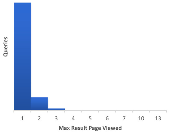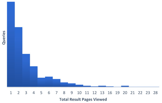 The duration of different search sessions may vary greatly. According to Jansen et al. [28], the intent of a web search session might be classified as informational, transactional, or navigational based on the intent of the searcher. Mendoza and Baeza-Yates’ findings indicated that the intent of a search session, and whether it is informational or not, may affect the search’s duration [29]. However, a long duration, as Hassan et al. mentioned [30], might be a sign of either exploring to discover interesting alternatives or struggling to find something useful. Studying how other implicit measurements change based on a search session’s total duration might provide better insight on both intent and on how user behavior changes through the course of a session.