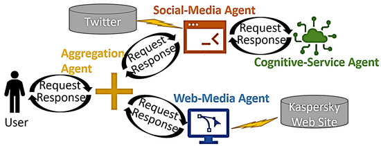 Figure 1 illustrates the schematic representation of the system wherein a user submits a request for cyber intelligence acquisition to the aggregation agent. The aggregation agent facilitates communication with two distinct agents, namely, the social media agent and the web media agent. The social media agent leverages various algorithms, including sentiment analysis, translation, term frequency analysis, topic modelling, and anomaly detection, to deliver cyber intelligence based on social media platforms, such as Twitter. These algorithms are implemented through both application programming interfaces (APIs) and non-API methods. The execution of API-based natural language processing (NLP) algorithms, such as sentiment analysis and translations, is carried out by a separate agent called the cognitive service agent.