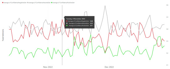 Daily average of tweet sentiments (8 November 2022 recorded the highest level of negative sentiment).