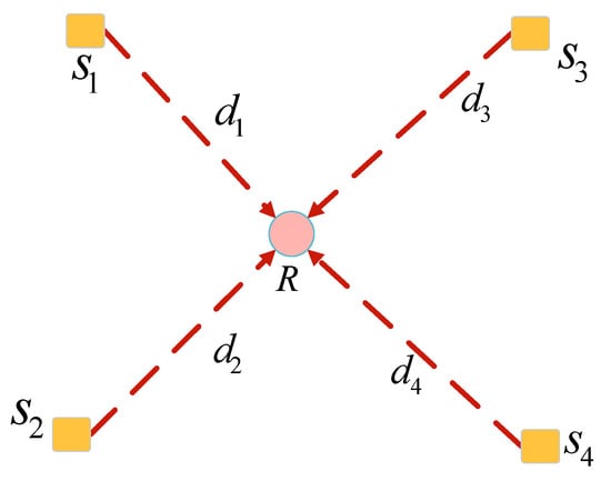 Figure 9 represents the fundamental mathematical model utilized in this article. represents the acoustic node . R represents the internal microphone of smartphone. TDOA needs to be converted into distance difference for positioning. The formula is as follows: