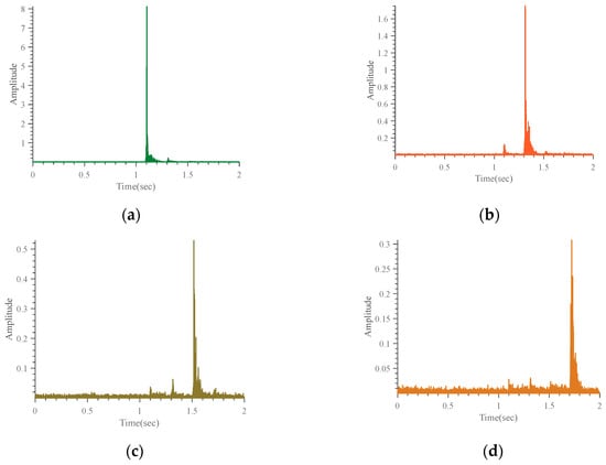 We use different prior signals (s1, s2, s3, and s4) to correlate with the received signal s(t). After cross-correlation, the signals can be decoded and the time delay of the signals can be estimated as well, which is shown in Figure 5.