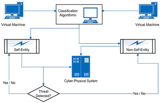 For the self-healing of cyber–physical systems to be effective, resilience must be at its core, just as defined in [25], where it is noted to include system monitoring, adaptation, redundancy, decoupling, and focus at the edges but simple at its core. ML is a notable toolset widely accepted in various research as a critical aspect of implementing self-healing functionality in computer systems. For example, as recent research has shown when combined with a fault-solving strategy network, an ML algorithm can o implement self-healing functionality in cyber–physical systems. The primary language for implementing ML algorithms is the R language, as presented by Bodrog in [25], and libraries such as Keras or Tensorflow are readily available to transform R language into other languages such as Python or C++. To overcome the problem of real-time systems self-healing and attack remediation issues, a framework for automated remediation triggers is possible, just as proposed by [37], and it details how self-healing can be built into the Internet of Things (IoT) devices. IoT has become popular in homes, offices, and schools, making it very important to construct self-healing devices to provide effective and uninterrupted services. The first factor to consider when developing a self-healing cyber–physical system is detecting anomalies and fault events. Naïve Bayes, artificial neural networks, convolutional neural networks, deep learning, etc., are some of the algorithms available to researchers to utilise in training anomaly datasets and to create a classified pattern of threat events. The dilemma in making this consideration is how to prevent the algorithm chosen from flagging up business-as-usual events wrongly as anomaly events; hence, the ML algorithm must be able to differentiate between these events. Danger theory is one approach that can be deployed to resolve the false-negative issues, in the sense that a threat alarm can only be raised when there exists the presence of potentially harmful events that the system is not familiar with and thereby eliminate “zero-day” attacks or in other words, attacks that the system had not seen previously.