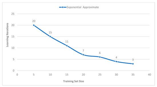 A physical platform comprising 35 Raspberry Pi devices, with similar hardware and software on each device, was used in experimentation. All the Raspberry Pi devices were connected to a network switch on a LAN. The long short-term memory (LSTM) model was initialised on each IoT device with random weight to evaluate the experiment. Then, an attack is triggered on the devices using attack stimulators based on the Red Hat Ansible engine, an IT automation tool. After each episode, the genetic algorithm is executed to update the LSTM model through learning iteration. The learning iterations are measured on all the devices connected to a testbed against the response of the attack, and a countermeasure action is undertaken to return the devices to their normal states. One of the critical discoveries during the experiment is that increasing the number of devices connected to the testbed (i.e., training sets) decreases the learning process time exponentially, as shown in (Figure 7).
