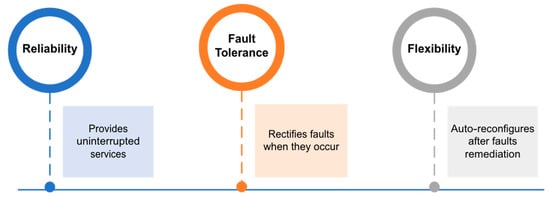 Similarly, a system that is resilient to system intrusions and built using Python-based libraries, software-defined networks, and virtual machine composition was proposed by [3]. The system is called Shar-Net and was tested in a smart grid environment. The experiment results show demonstrably viable IDS that can prevent cyber-attacks and, at the same time, can mitigate the effects of attacks through the system network’s automatic reconfiguration. The principal areas covered in the proposed system are intrusion detection system (IDS), intrusion mitigation system (IMS), and alert management system (AMS). Zolli and Healy describe the resilience of a system in [10] as the ability of the system to recover from failure or attack. The above description is quite different from a robust system. A robust system is a system that is built to withstand unforeseen threats. Although the two terms describing the core functionality of a self-healing-capable system might be used interchangeably, it is essential to note the difference between them. A robust system relies on threats that have been previously seen and thus has allowed the designers of the system to build countermeasures to such threats proactively. On the other hand, a resilient system retroactively reacts to unforeseen or “zero-day attacks” and applies countermeasures accordingly. The authors of [10] listed the following principles of a resilient system: