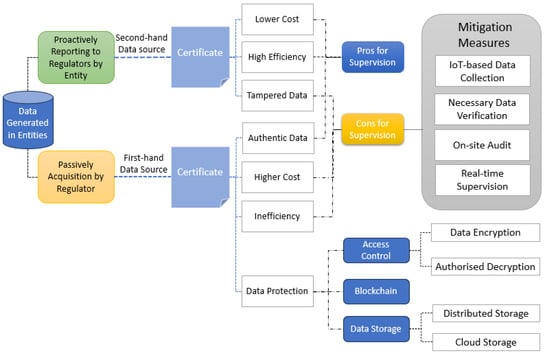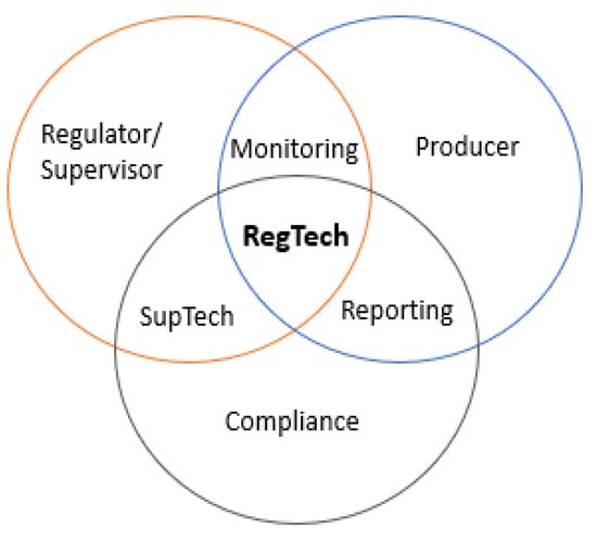 RegTech and SupTech have different focuses, whereas the former is concentrated on assisting companies and the latter spotlights enhancing supervision from the supervisor’s viewpoint. RegTech is a tool for enterprises to prove what they performed, while SupTech is used to evaluate and verify their behaviors. The key mediator that links them is the data collected and reported by one while being received and verified by the other. SupTech and RegTech belong to the family of compliance technologies as they share the same target of making the products or services qualified to meet compliance requirements and regulations. A failure in either the reporting of data or its verification will risk the whole compliance process, which must be integrated. In this paper, we refer to a broad scope of RegTech, as shown in Figure 1, when discussing RegTech from the perspective of compliance, which is the destination of all efforts. In short, the rapid development of compliance in all sectors relies on the joint efforts of all stakeholders.