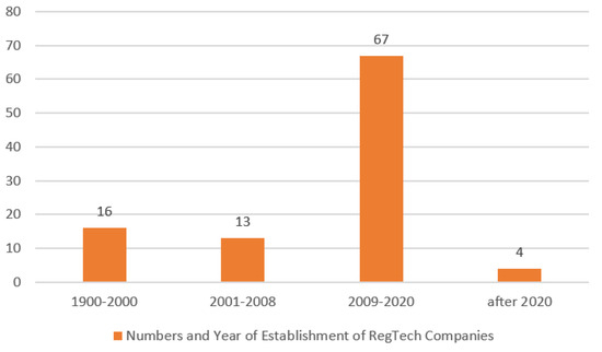 Numbers and Year of Establishment of RegTech Companies (Based on “RegTech100-Report-2023” [22]).