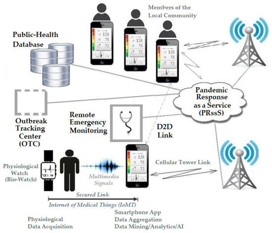 The capabilities of the current smartphones and the feasibility of utilizing body-worn sensors enable the non-invasive detection of the following CPPs: dry cough, fever, heartbeat rate, fatigue (manifested as unusual inactivity), shortness of breath (dyspnea), nasal congestion, confusion (manifested in abnormal EEG “electroencephalography” readings), and low blood oxygen level (hypoxemia). Pre-existing medical conditions can also be tracked by using body-worn sensors, such as electrocardiography (ECG), to track cardiovascular issues, and terahertz technology, to track diabetes [22].