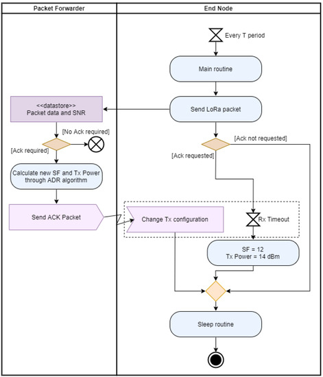 - Finnegan, J.; Farrell, R.; Brown, S. Analysis and Enhancement of the LoRaWAN Adaptive Data Rate Scheme. IEEE Internet Things 2020, 7, 7171–7180. [Google Scholar] [CrossRef]
