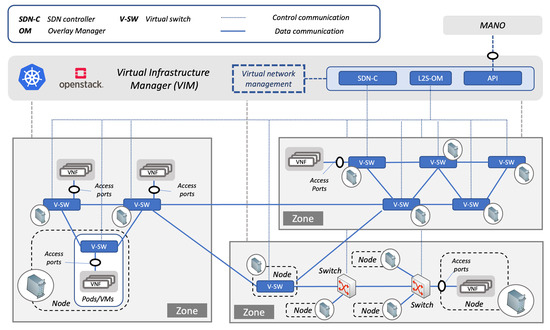 There have also been proposals to enhance the networking of microservice platforms in the NFV context. One prominent example is the network service mesh (NSM) [33]. NSM offers a set of application programming interfaces (APIs) that allow the definition of network services (for example, an IP router, a firewall or a VPN tunnel), and establishes virtual point-to-point links between pods that want to access determined network services and pods that implement such services. NSM is designed to provide its connectivity service in scenarios with multiple clusters or cloud infrastructures, keeping the CNI solution used in every cluster. NSM presents a promising approach for exploiting the potential of cloud-native technologies in an NFV ecosystem. In such an ecosystem, NSM would provide the abstraction of a network service. For example, if a VNF offers an IP routing service, NSM would allow the establishment of virtual point-to-point links among this VNF and the remaining VNFs that must have IP connectivity with the former, depending on the NFV service to be deployed. However, this connectivity service does not provide the versatility of a virtual network. On the one hand, NSM does not allow to connect multiple VNFs into a single link-layer network in such a way that they can share a single broadcast domain (i.e., NSM does not offer the multi-access link abstraction). This aspect can be a limiting factor to deploy telecommunication or verticals services in an NFV ecosystem. On the other hand, the NSM APIs do not offer an open interface that allows the cloud infrastructure administrator to flexibly manage the existing virtual links. Following the previous example, it could be desirable to change the configuration of a point-to-point link in such a way that it terminates in another IP router instance in order to support load balancing; mirroring port configurations could be required to monitor data traffic transmitted over a link; or the temporary shutdown of certain links and their subsequent activation could be needed when managing a security incident; etc.