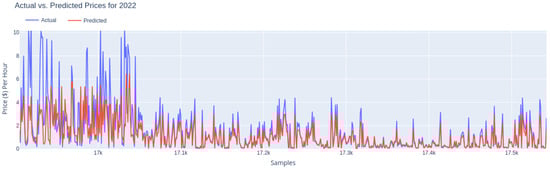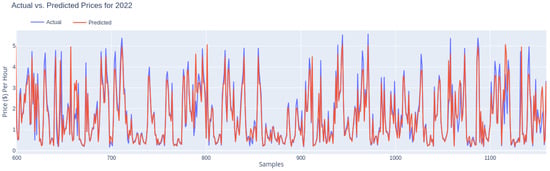 The model’s performance will be evaluated using metrics such as the mean absolute error (MAE), root mean squared error (RMSE), and mean absolute percentage error (MAPE). If are the predicted variables and the actual variable inside a data subset with n values (typically not included in the training), then these are given by [24]: