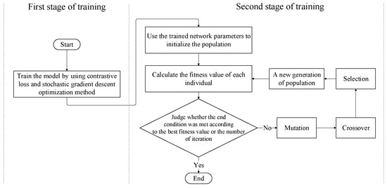 As can be seen from Figure 9, the two-stage training method proposed in this paper can significantly improve the training performance of the model compared to the training method that only uses contrastive loss and SGD (one-stage training). This is because the use of the differential evolution algorithm compensates for the deficiency of contrastive loss, which only focuses on between-class scatter.