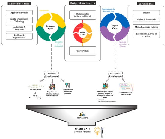 To lead the investigation towards a proposed gate solution, a design science research (DSR) by Hevner [68,69] was adopted. This methodological approach considered information from several sources of requirements, encompassing both theoretical and practical aspects, as can be seen in Figure 1.