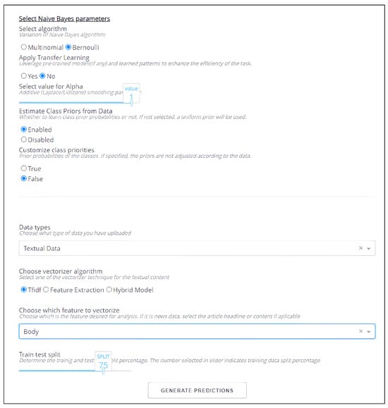 Feature Extraction: Three distinct feature extraction methods will be employed across the first twelve experiments, namely, TF–IDF, Empath, and the novel hybrid approach. The TF–IDF method will be exclusively utilized for the remaining experiments.
