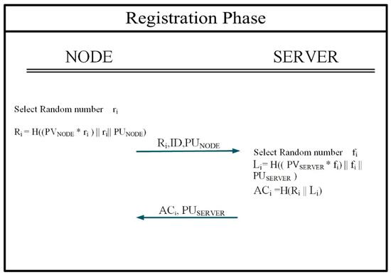 Finally, the server sends the ACi parameter to the node using a secure channel. In Figure 2, the registration process is outlined alongside the values utilized in this process.