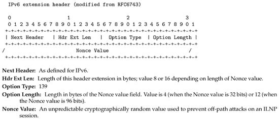 41] implemented as Destination Option extension header for IPv6 needs to be sent from host to host for an ILNP packet flow. Some firewalls might disallow such extension headers.