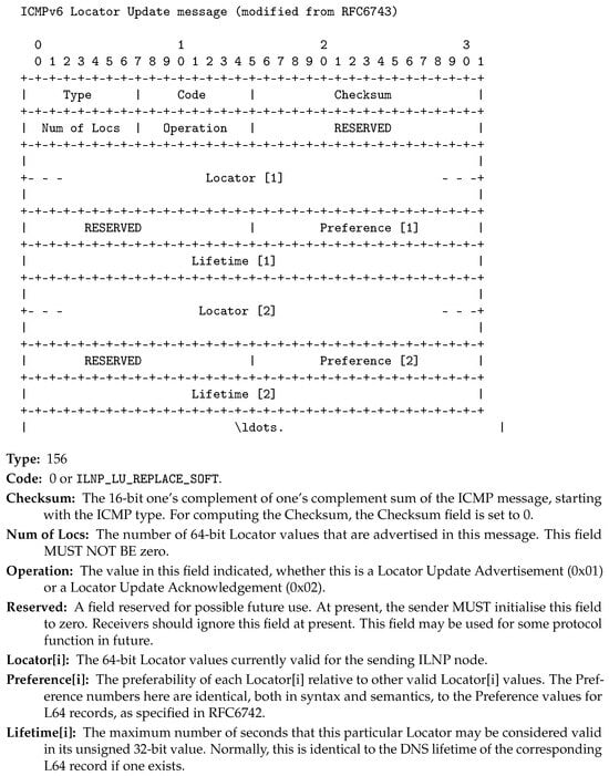 The ICMPv6 messages for ILNP Locator Update (LU) signalling [