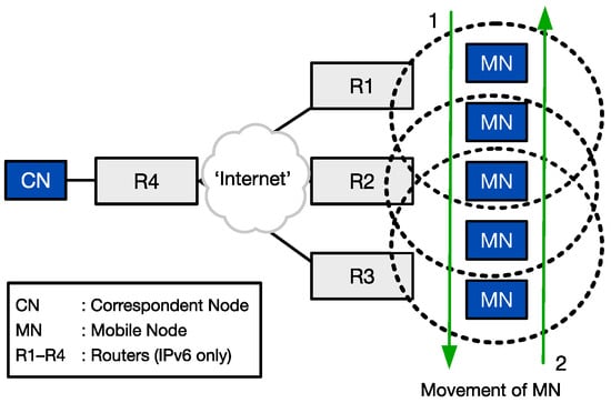 13]). Basic MIPv6 support for mobility is via a solution that is part host and part network. It requires a mobility management server (with a proxy/forwarding function), the Home Agent (HA), to track a Mobile Node (MN)’s topological location, as well as forward packets to and from the Correspondent Node (CN). Meanwhile, the MN needs a user-land daemon to establish a tunnel to the mobility management server. Unlike MIPv4, a MIPv6 MN does not require a Foreign Agent (FA) (another proxy) to be present in the network it moves to. However, the requirement for the HA, and therefore the presence of a home network (HN), still remains, along with the use of two IP addresses to refer to the MN (as explained below).