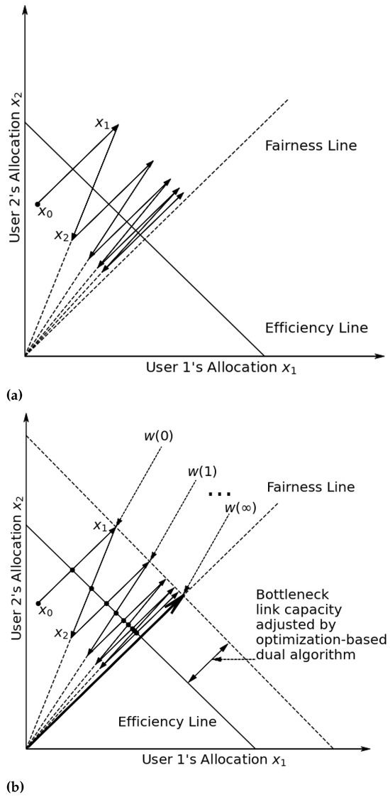 - Chiu, D.M.; Jain, R. Analysis of the increase and decrease algorithms for congestion avoidance in computer networks. Comput. Networks ISDN Syst. 1989, 17, 1–14. [Google Scholar] [CrossRef]