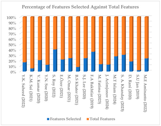 The filter-based method eliminates insignificant features with minimal impact on data analysis. This approach conducts a statistical test for each attribute in the dataset, considering its relationship with the targeted attribute. Consequently, in filter criteria, all the features are scored and ranked based on certain statistical tests [77]. The features with the highest-ranking values are selected, and the low-scoring features are removed. This approach is computationally efficient and produces fewer system overheads [78]. Wrapper-based feature selection follows a greedy search approach by evaluating all possible feature combinations against the evaluating criteria [75]. The targeted attributes and possible combinations of independent variables are assessed by learning and evaluating a classifier. The wrapper approaches predict better accuracy as opposed to filter-based approaches but require more computational resources [77]. The embedded methods combine the qualities of filter and wrapper methods; consequently, such methods produce a highly accurate feature set [79]. Table 4 presents and summarizes the methods widely adopted in literature for feature selection that have been commonly adopted in the context of ML-based IDS.