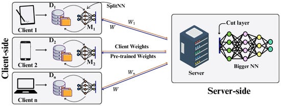 - Pham, N.D.; Phan, T.K.; Abuadbba, A.; Gao, Y.; Nguyen, D.; Chilamkurti, N. Split learning without local weight sharing to enhance client-side data privacy. arXiv 2022, arXiv:2212.00250. [Google Scholar]