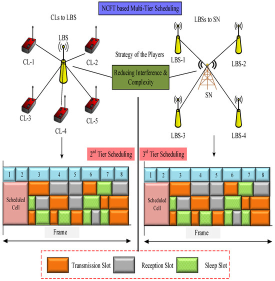 - For reducing the unwanted interference and complexity issues, we have performed multi-tier scheduling based on a NCFT approach in which the scheduling is performed in three tiers such as CMs to CL, CLs to LBSs, and LBSs to sink nodes.