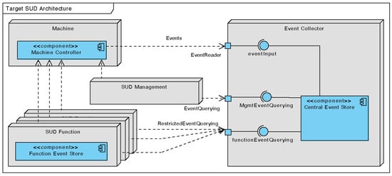 In all these systems, there are “Machines” (i.e., gaming machines, drones or military vehicles) that generate the events that are central to the system operation. Each machine has a controller component that is used to integrate it with the SUD. Machines may send events to a central component (Event Collector) that has a central event store or to specific modules controlling different functions of the SUD, which may also have local event stores. An SUD Management module also exists, to coordinate the rest of the SUD.