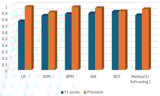 Figure 9 shows that Method 2 (Soft Voting) maintains a good balance between precision and recall, which is crucial in phishing detection. Considering specific requirements, where either higher precision or recall may be more critical, Method 2 proves to be suitable for addressing these needs.