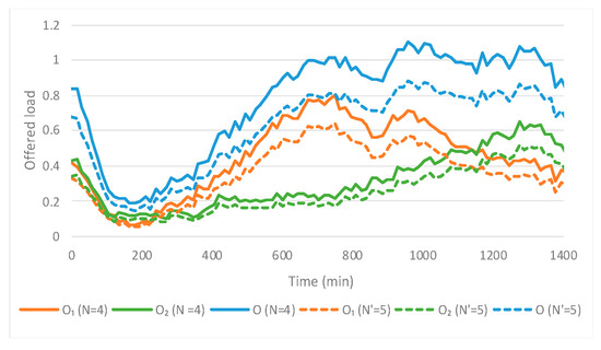 Aggregated offered load per tenant in one cell for N = 4 and N′ = 5.
