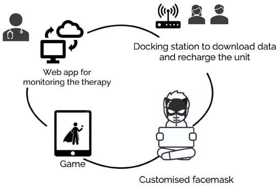 Figure 2) with a double aim: (1) to develop a monitoring system to be used by the orthodontist to evaluate the progress of treatment, and (2) to create a gamified environment to improve compliance with the therapy by engaging the child in a playful activity. Indeed, the main scope of the project was to enhance the experience of children by making them perceive the mask no longer as an orthodontic appliance but as a special mask. In a gamification perspective, the masks are designed as superhero masks with several fabric adornments (