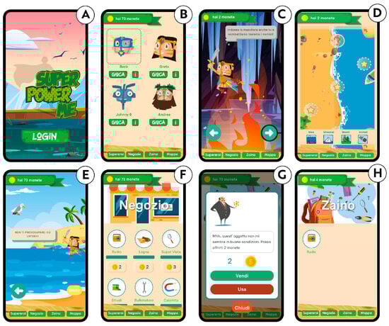 With these considerations in mind, Save the World of Naturalia! was devised by the designers in the project team as a therapeutic game specifically for Class III malocclusion treatment. The game is structured to create an engaging, playful experience that encourages compliance with the therapy protocol. Unlike traditional therapeutic games (e.g., exergames), the game’s challenges and tasks are not directly tied to the therapeutic regimen. Instead, the game operates independently of the therapy, allowing children to play at any time, following the game’s narrative and dynamics.