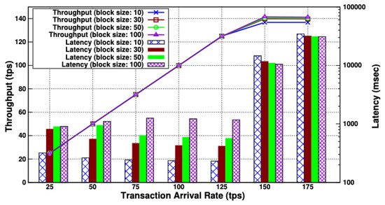 - Thakkar, P.; Nathan, S.; Viswanathan, B. Performance benchmarking and optimizing hyperledger fabric blockchain platform. In Proceedings of the 2018 IEEE 26th International Symposium on Modeling, Analysis, and Simulation of Computer and Telecommunication Systems (MASCOTS), Milwaukee, WI, USA, 25–28 September 2018; pp. 264–276. [Google Scholar]