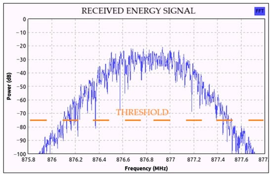- Pandya, P.; Durvesh, A.; Parekh, N. Energy detection based spectrum sensing for cognitive radio network. In Proceedings of the 2015 Fifth International Conference on Communication Systems and Network Technologies, Gwalior, India, 4–6 April 2015; IEEE: Piscataway Township, NJ, USA; pp. 201–206. [Google Scholar]