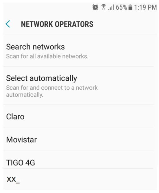 We identified data from telecommunication operators in Colombia by analyzing site survey measurements and experimental configuration settings about PUs and PUEs. The relevant information includes mobile country code (MCC) 732 and mobile network codes (MNCs): 101 for Claro, 102 for Movistar, 111 for Tigo, 142 for UNE, and 154 for Virgin.