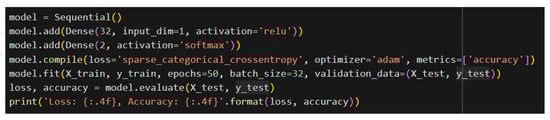 The DNN code is implemented with Keras in Python; part of the code can be seen in Figure 16.
