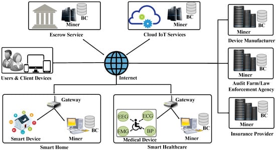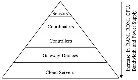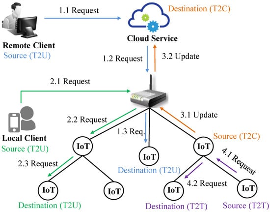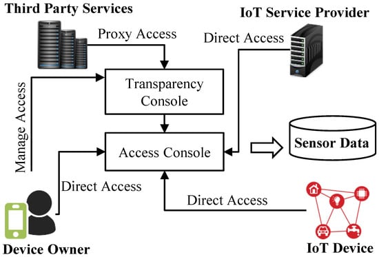 We present components and operational model of an IoT system [,] in Figure 3. The details of the components are as follows.