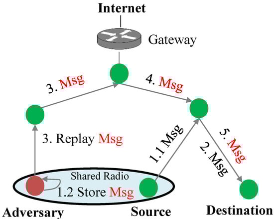 Modification: In this type of attack, a malicious node modifies messages that are routed through it. An adversary attempts to trick a victim node into performing unauthorized actions or revealing sensitive information. A scenario of the message modification attack is shown in Figure 8. A malicious Node M is located in the communication path between Node S and Node D. Node M modifies the content of a message sent by Node S before forwarding it to Node D. Node D may accept the altered message if it does not implement a security scheme that validates the integrity of a received message. As a result, the victim node may perform an action based on the modified information.