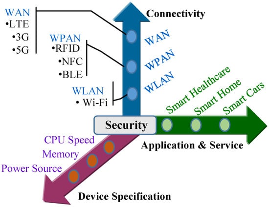 With its manifold technical and functional benefits, the Internet of Things (IoT) has emerged as a significant paradigm to advance the Fourth Industrial Revolution [,,,]. The size and nature of the IoT continues to grow, and it will eventually be massive and pervasive. It enables an extensive set of applications and services such as home automation, environmental monitoring, healthcare, transportation, agricultural automaton, connected vehicles, energy efficiency and smart grid, remote monitoring, security, and safety. To do so, IoT devices make their services and data accessible to stakeholders, including end users and cloud services, through Internet connectivity. These services and data must be organized so that any form of access to the data is secure and limited to the parties involved. The security aspect of IoT emerges as the biggest concern; as the IoT spreads widely, digital mischief is likely to become a progressively physical threat [,,,].