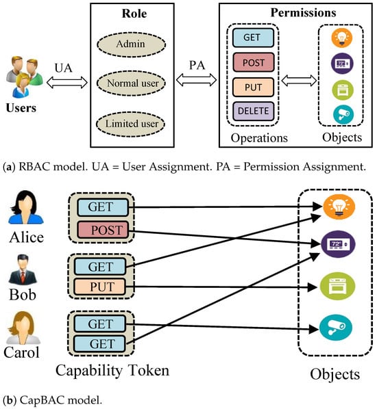 - Anggorojati, B.; Mahalle, P.N.; Prasad, N.R.; Prasad, R. Capability-based access control delegation model on the federated IoT network. In Proceedings of the 15th International Symposium on Wireless Personal Multimedia Communications, Taipei, Taiwan, 24–27 September 2012. [Google Scholar]